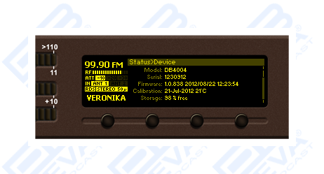 The DB4004 is our second generation digital FM Radio Modulation Analyzer. It combines our long-term experience in FM Radio Monitoring and FM radio measurement “know how.” The RF (IF) signal is digitalized as soon as it enters the device and all signal processing is then made through DSP algorithms. The signal being digitalized in this way, at the input, the equipment acquires measurement reproducibility over time. The powerful accuracy of the digital filters used in this equipment enables the FM multiplex signal components to be accurately and repeatedly reproduced from one device to another. The incredible processing power of the device enables all measurements to be refreshed simultaneously and synchronously, thereby allowing for detailed readings of all the Multiplex FM signal components. The DB4004 has an easy to read, high-resolution OLED graphical display and ultra-bright bargraph LED 60 segment indicators that allow reading the main signal parameters at a glance. The built-in DB4004 Oscilloscope represents the observed signal change, over time and helps you visualize the most important signals participating in the process of demodulating and stereo decoding. Complimenting the Oscilloscope mode, the Spectrum analyzer mode allows spectral analysis of the input signal and some of DB4004 features likewise. Spectral components of the selected signal are determined on the basis of Fast Fourier Transform. MPX Power and all other level measurements are supported by measurement history data. In addition to the list of DB4004 features, RDS information contained in the processed MPX signal is easily visualized and represented as RDS/RBDS Data and detailed RDS/RBDS Statistics.