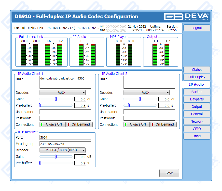 | Receiver | IP Audio Client, RTP |