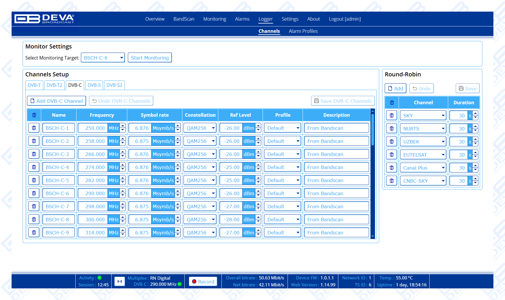 | Round-Robin Logger | Monitor sequentially multiple channel frequencies or PLPs |