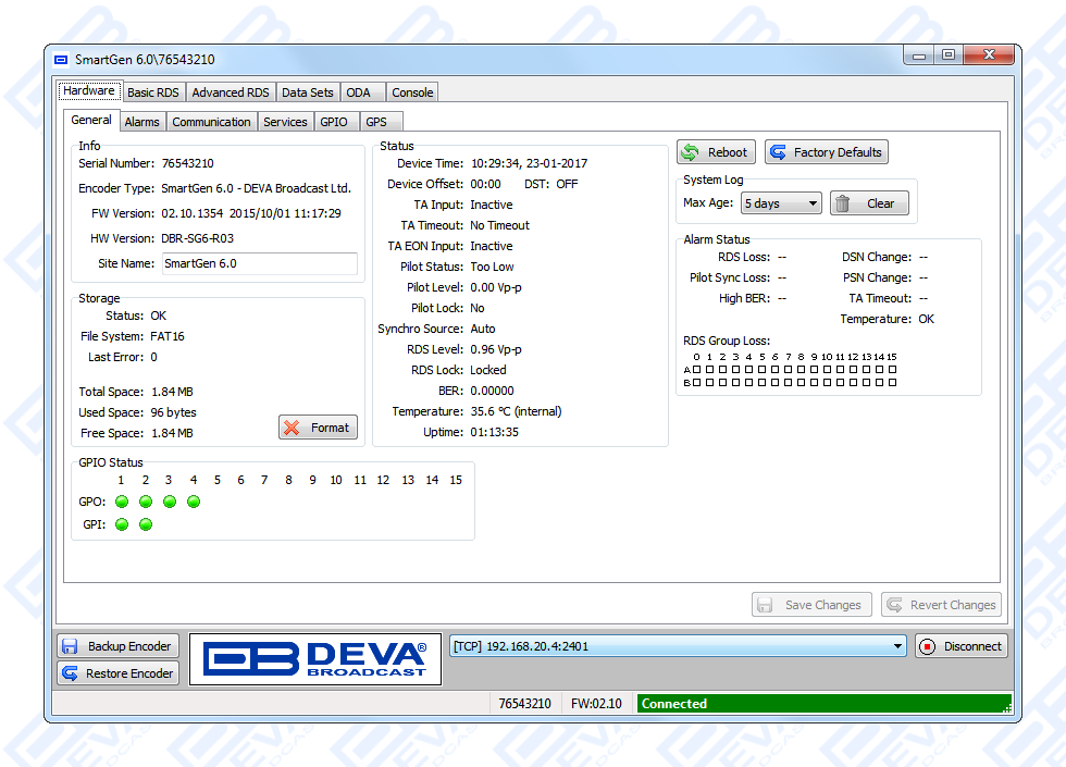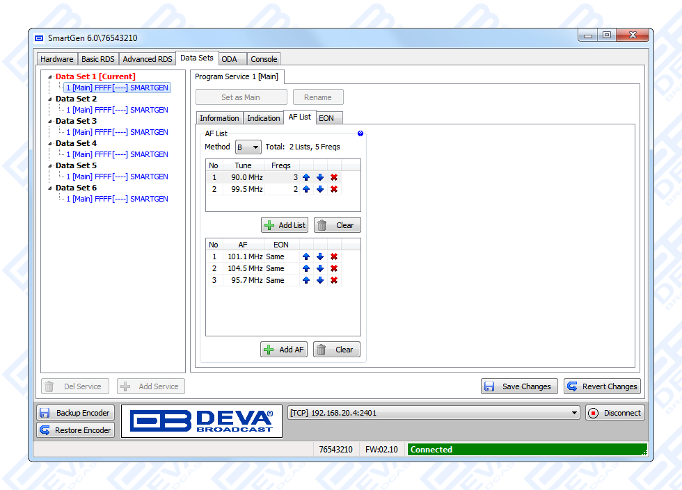 Since all DEVA’s products are manufactured to be user friendly in terms of operation, SmartGen 6 comes with simple and reliable programming software: “SmartGen RDS/RBDS Encoders Manager” and a password protected WEB interface for remote connection.