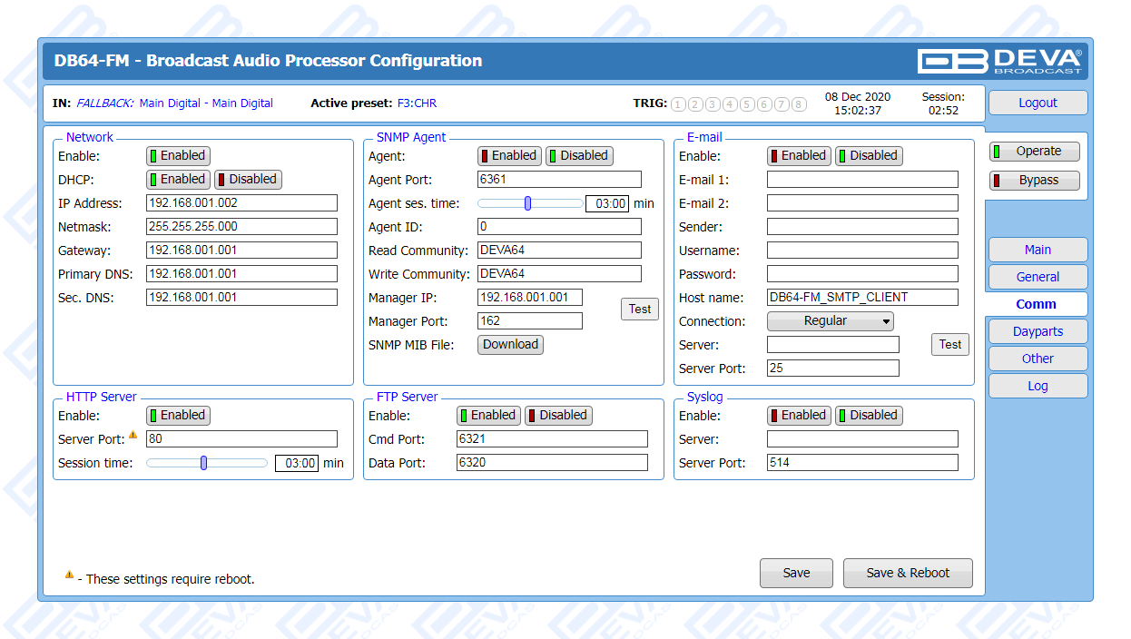 As part of its long and well-established tradition of occupying just the right market niches and supplying the broadcasting world with products that stand out as the best answer to customer needs, DEVA is yet again delivering a tool of undisputed quality and surpassing even its own high standards. A device appropriate for all LPFMs and featuring a 4-band processor with Fidelity and Sound Impact System, the DB64-FM makes no compromises with sound quality. Among its wide variety of features are the FM controlled distortion limiter, the analog and digital audio outputs, two independent composite MPX outputs, as well as its ability to detect signal loss and switch over to a backup source. Automatic notifications are sent upon input or preset change via email or SNMP.