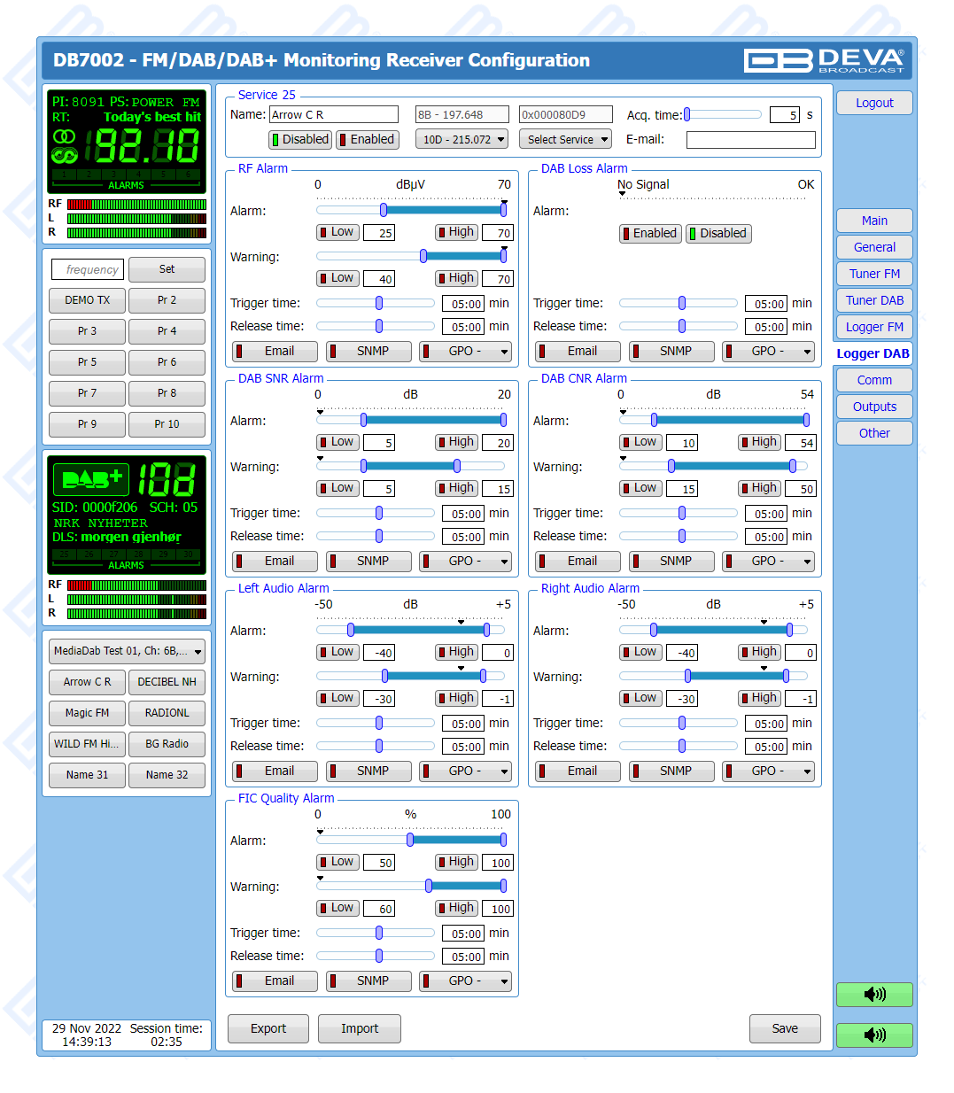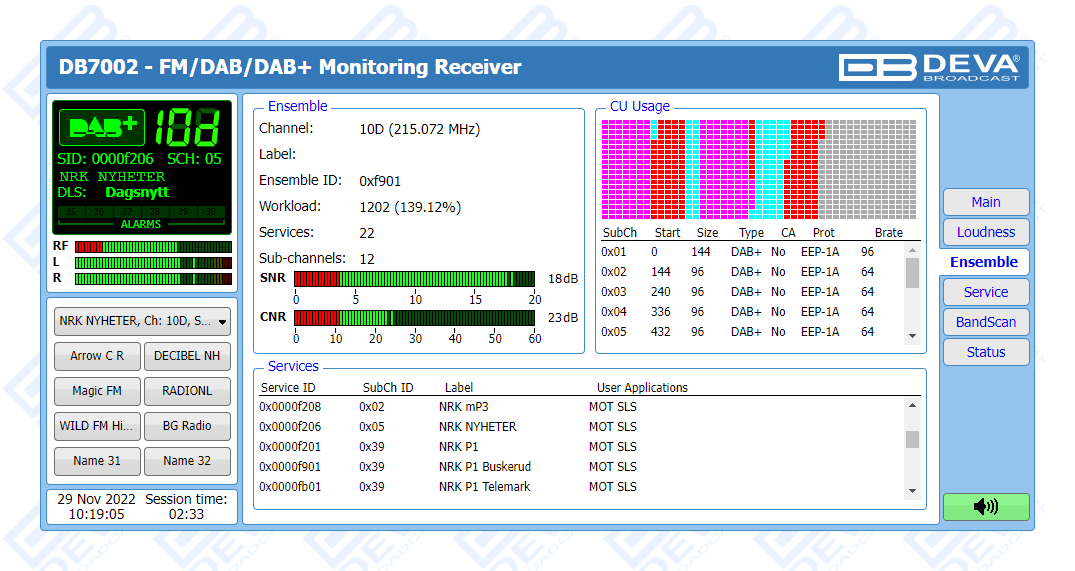 As an FM monitoring tool, DB7002 also provides powerful signal processing capabilities through sophisticated DSP algorithms and offers a Loudness Meter, which allows for measurements to be shown as defined by ITU BS.1770-4 and EBU R128 recommendations.