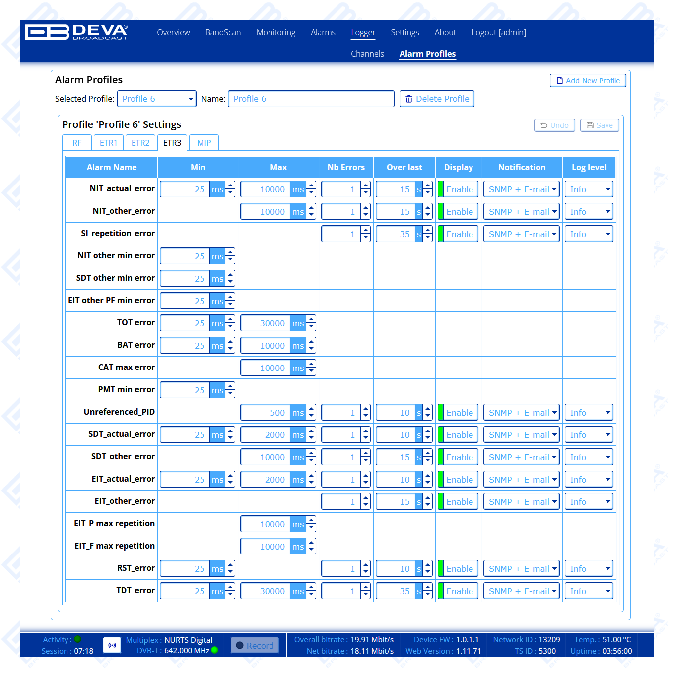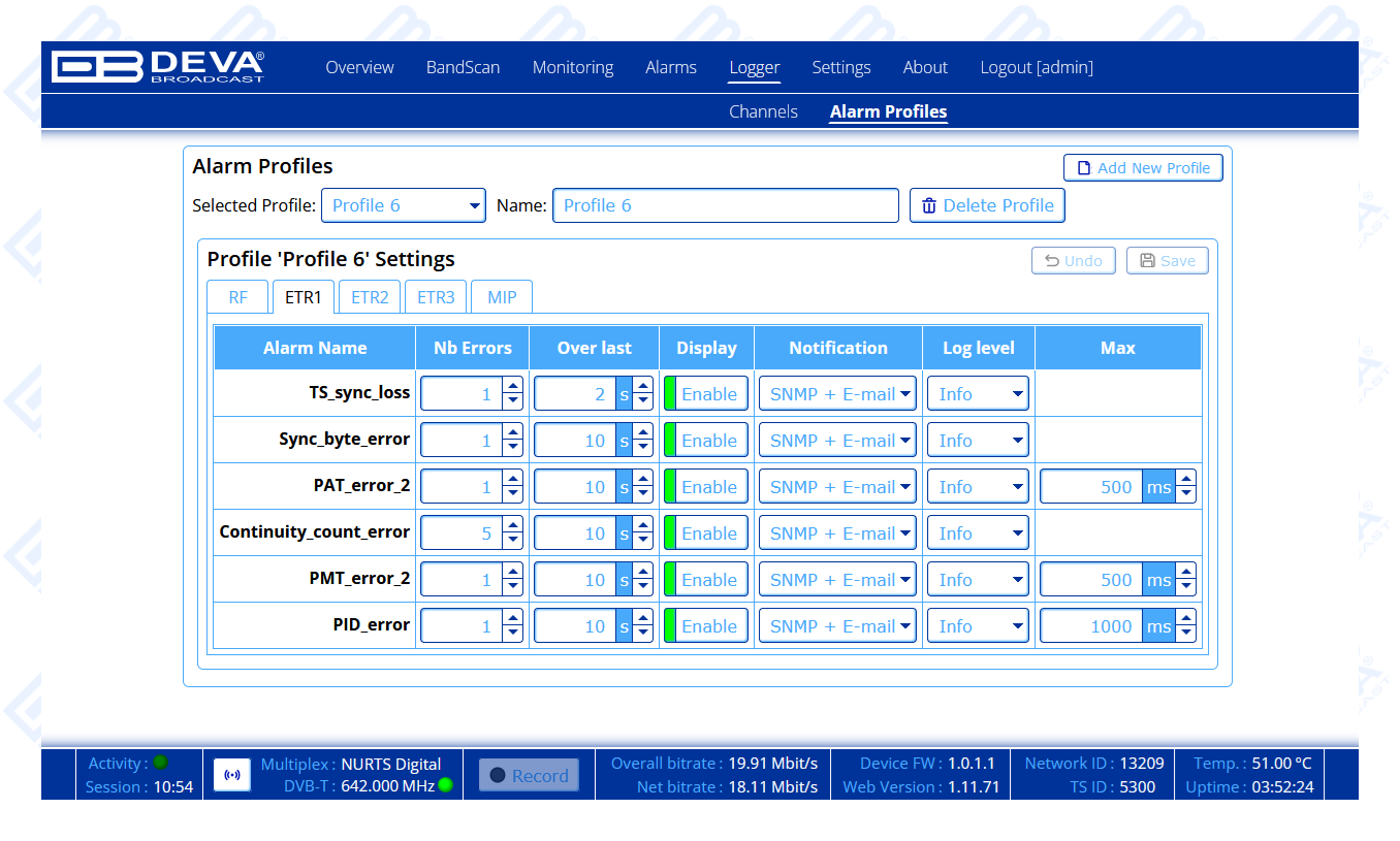 - Advanced MPEG Monitoring and PID Alarms