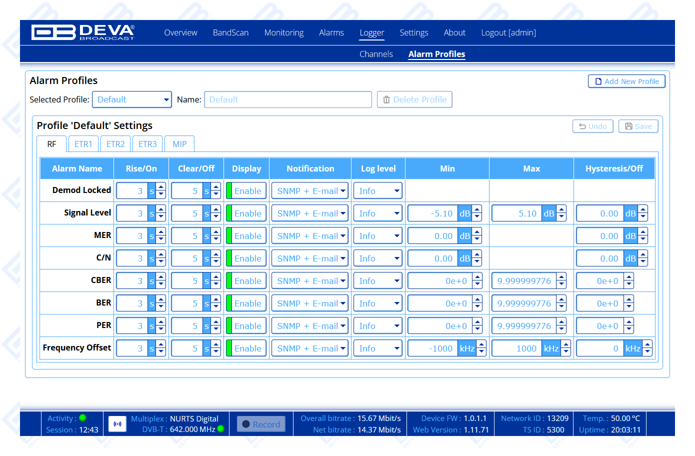 | SFN Monitor | Channel Impulse Response (CIR); Echoes Delay and Power Level alarms |