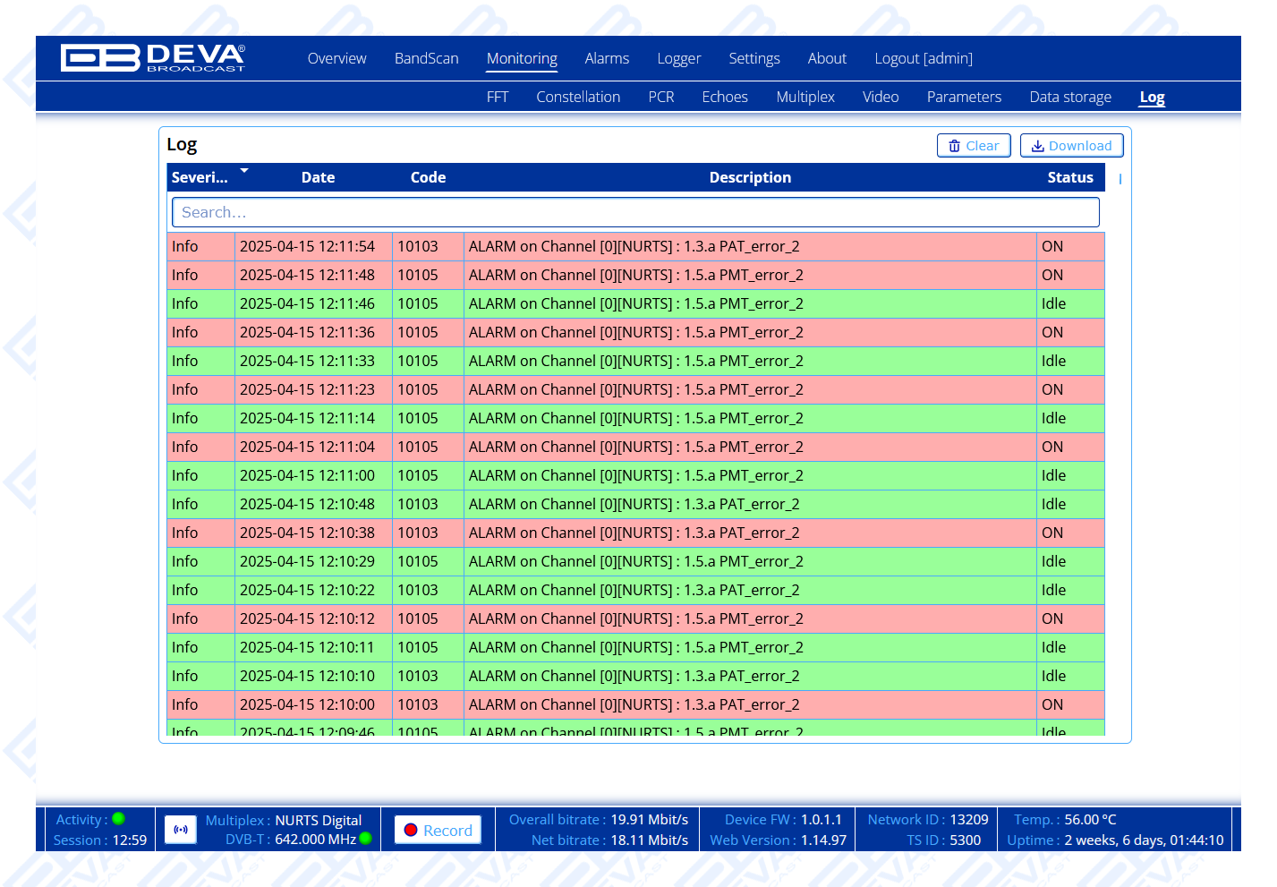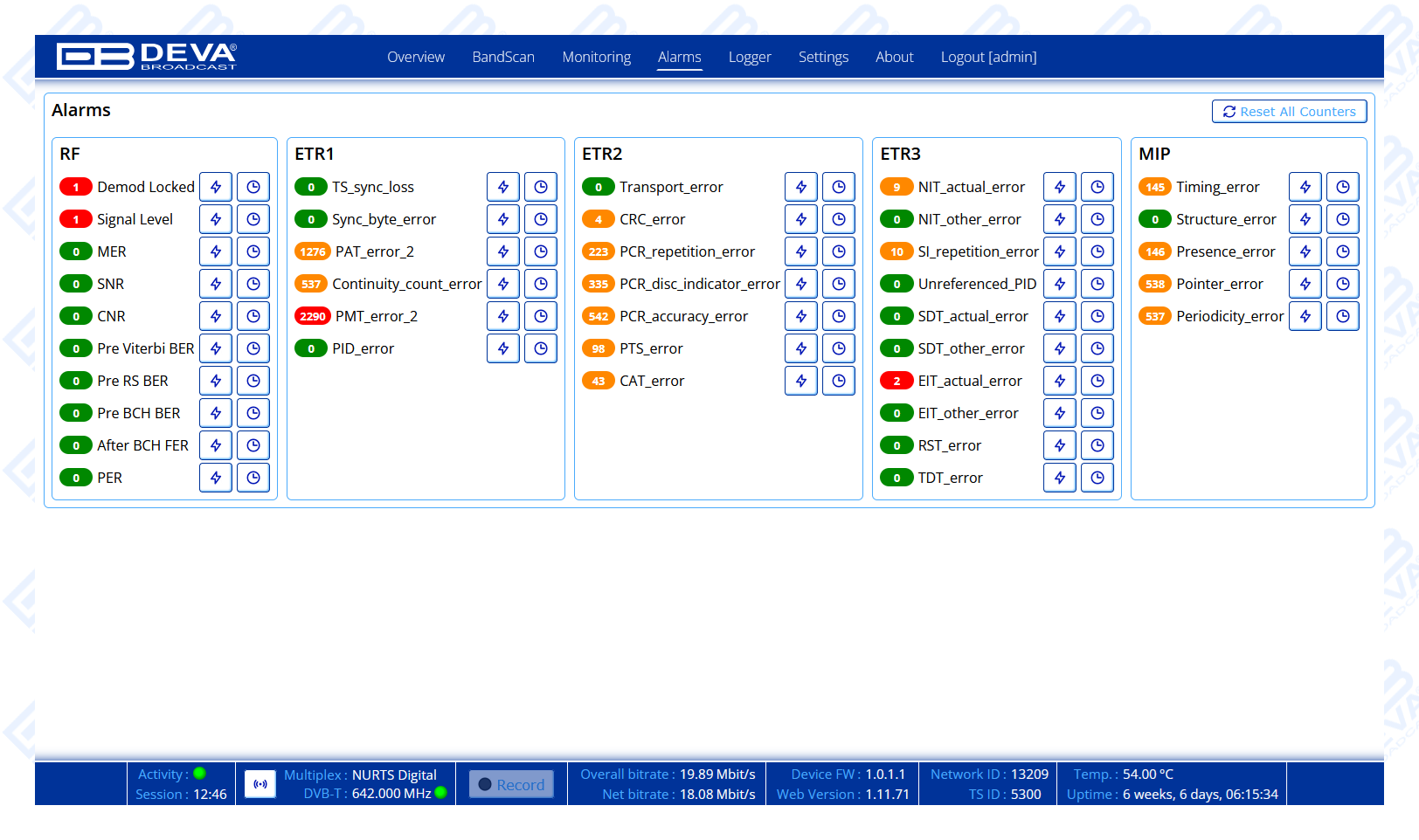 - TR 101 290 Monitoring, Priority 1, 2 and 3
