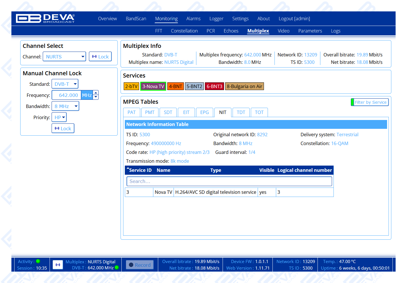 Firmware upgrades and protected access to device settings guarantee security and continued optimal performance, making this multi-standard monitoring tool the definitive solution for DVB-T/T2, DVB-S/S2, and DVB-C environments alike.