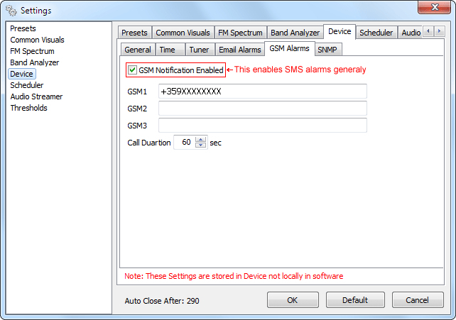 Through its TCP/IP and GSM (optional external GSM Modem) Connectivity DB4000 allows you to monitor all the RDS/RBDS and some other signal parameters from anywhere. You can easily receive the channel status or listen to the audio from anywhere, using your mobile phone. With the external Audio Stream Server option you can even listen to, skim through and record the audio from any station.