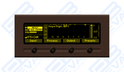 | Configuration | Stereo AES3 standard, 24 bit resolution. Software selectable flat, pre-emphasized or de-emphasized |