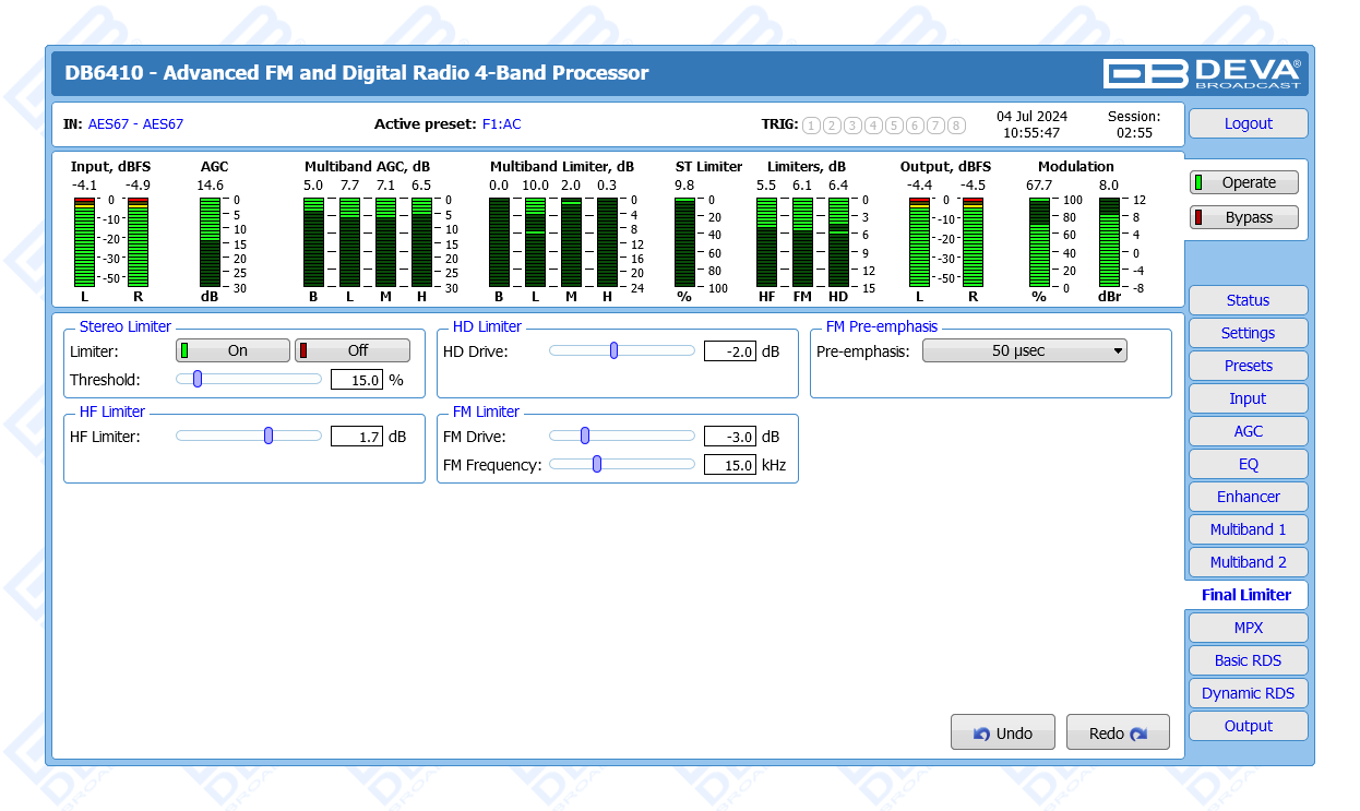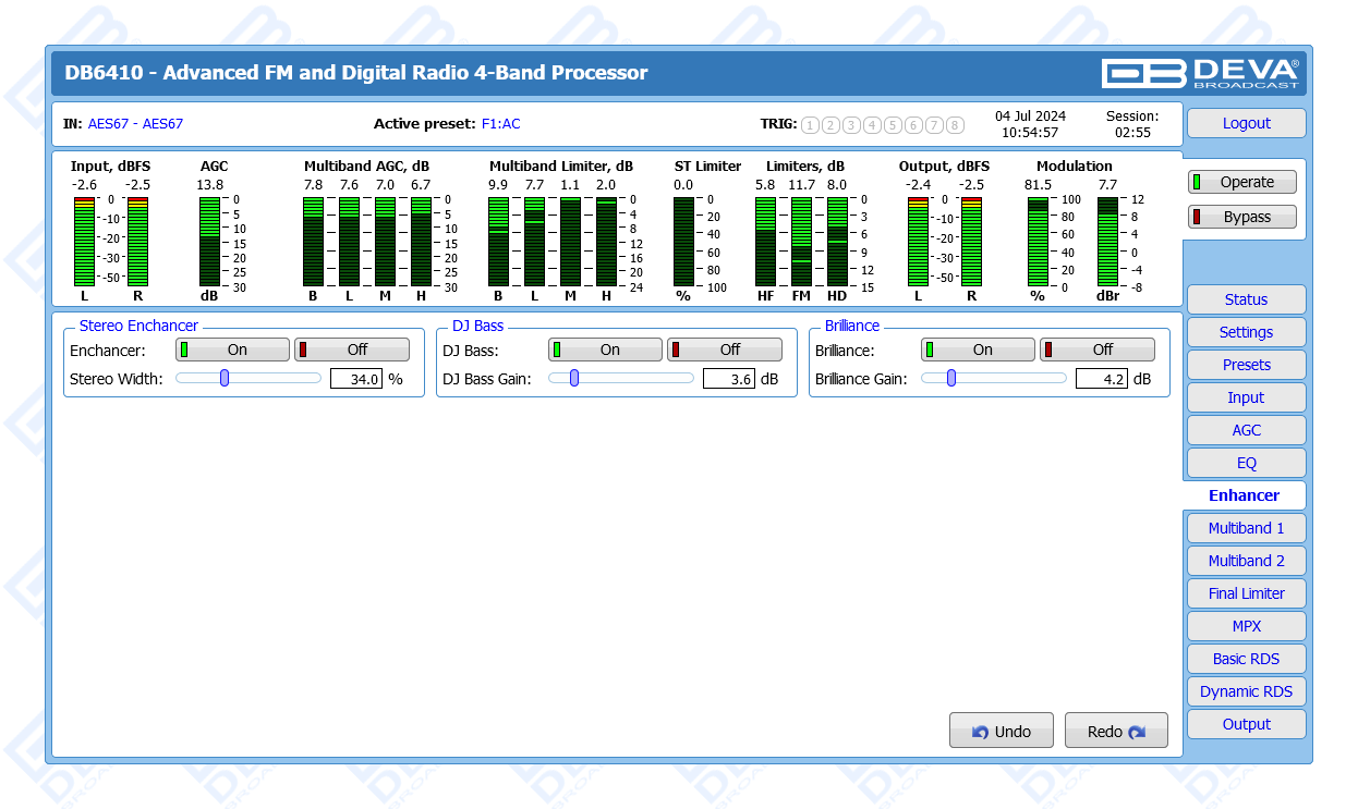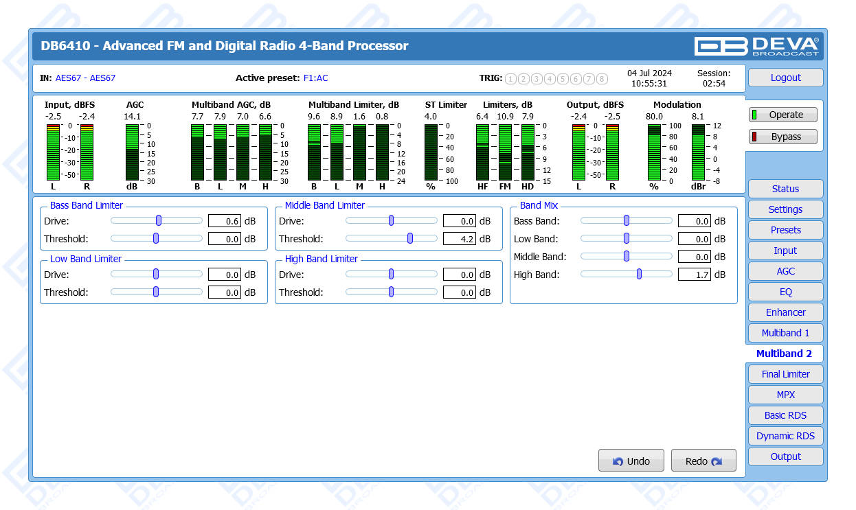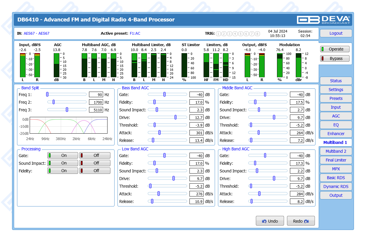 Advanced FM & Digital Radio, AES67 Compatible 4-Band Audio Processor