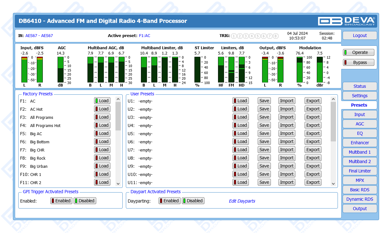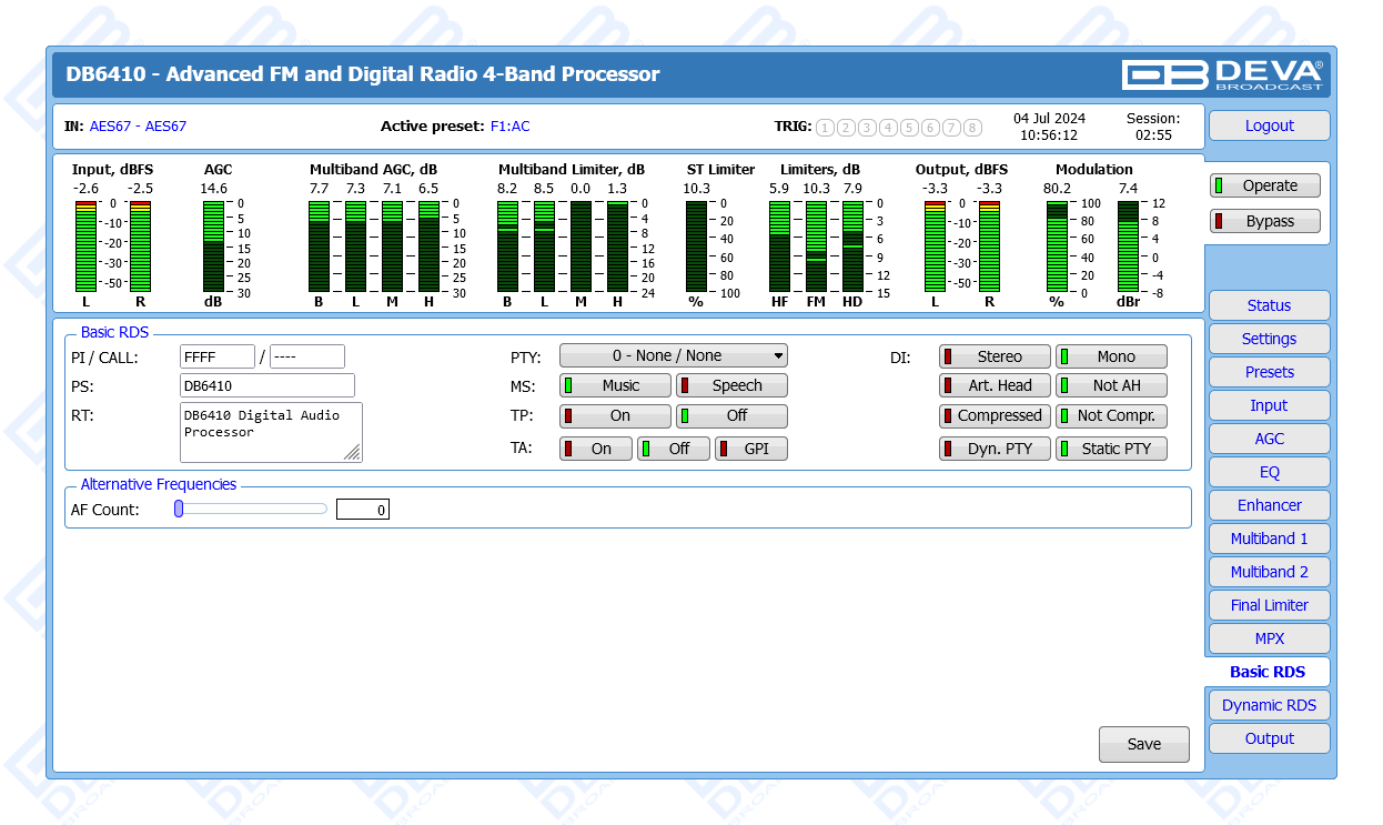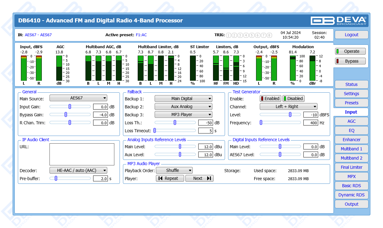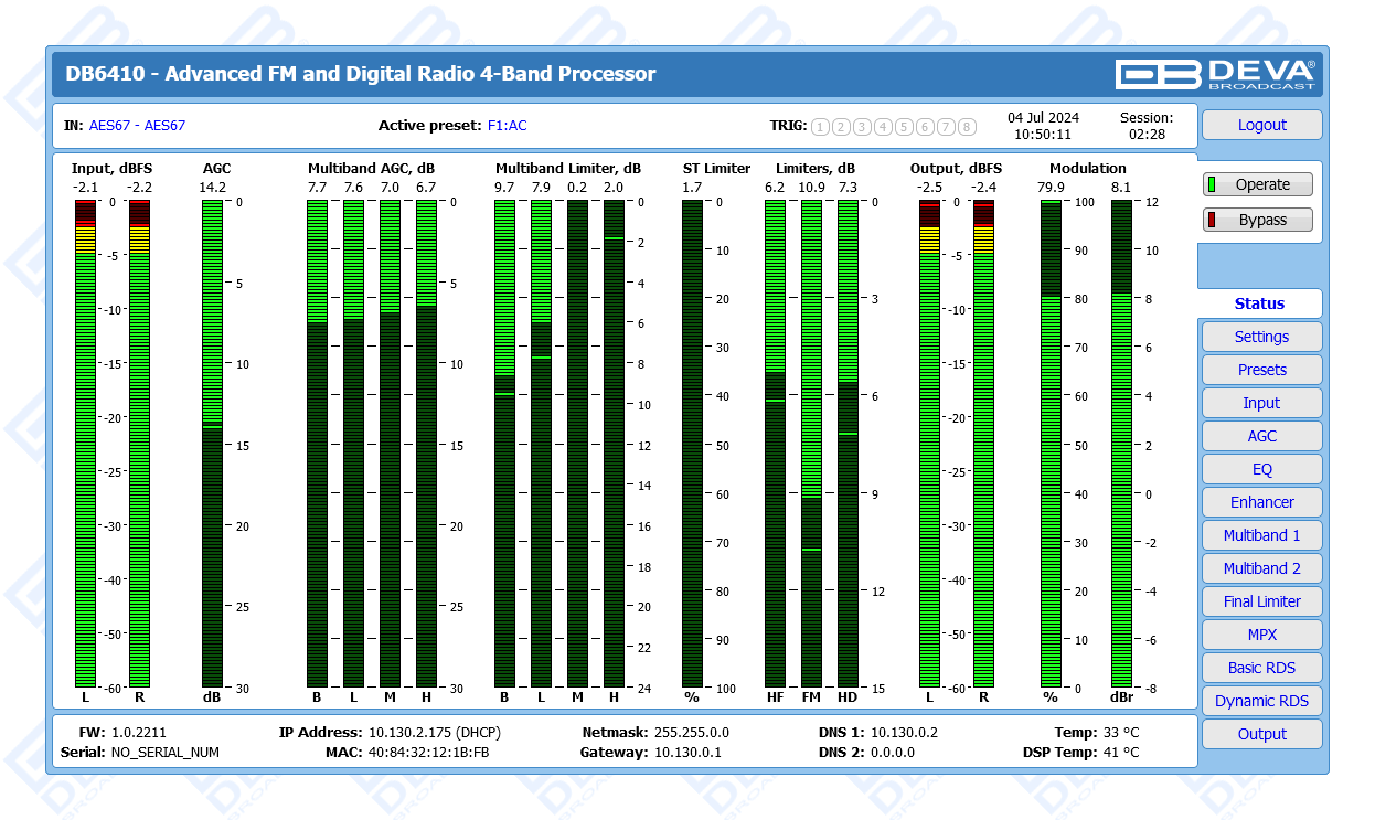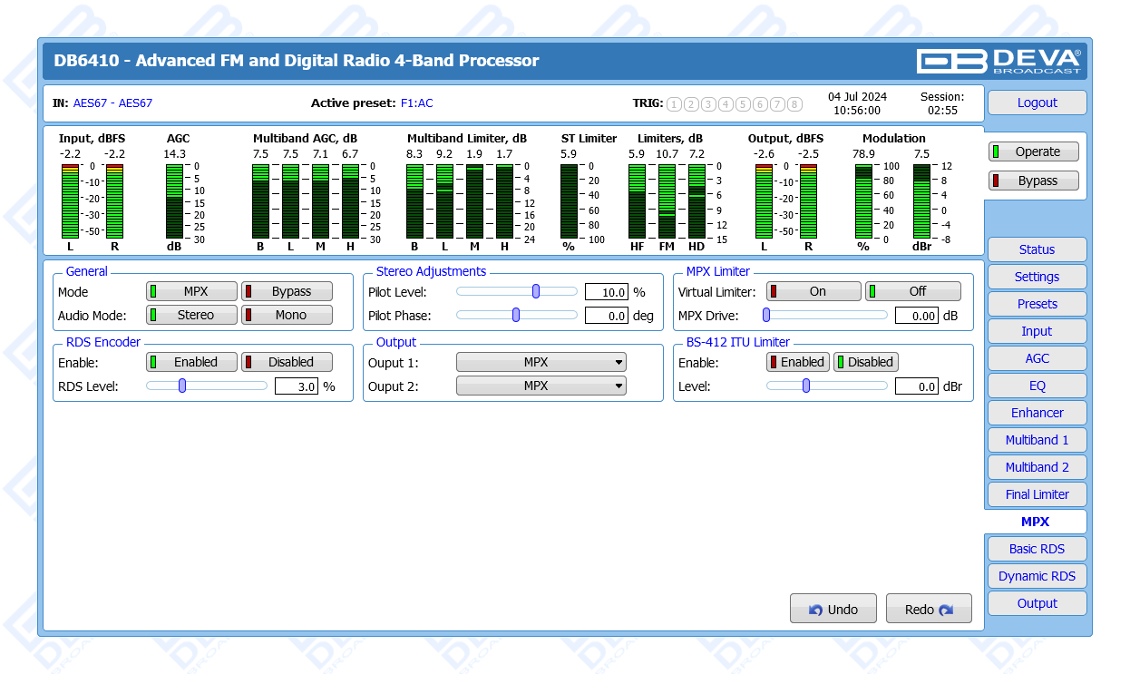 Advanced FM & Digital Radio, AES67 Compatible 4-Band Audio Processor