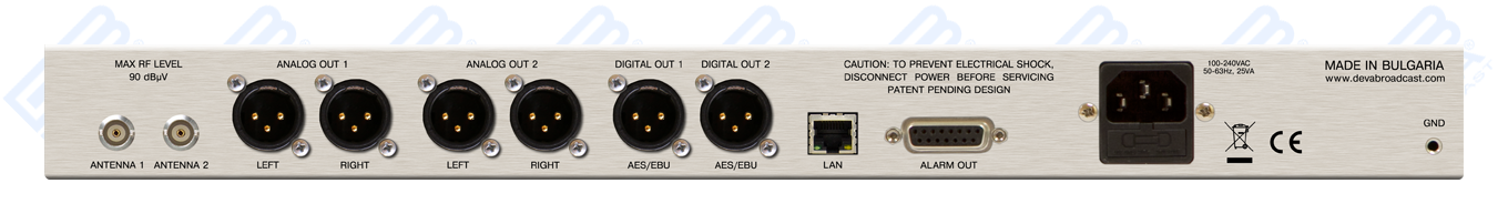 To make sure the transmission is not interrupted, there are local alarm options and online notifications via rear-panel alarm GPOs, E-mail and SNMP in case there is audio loss or a change in the signal.