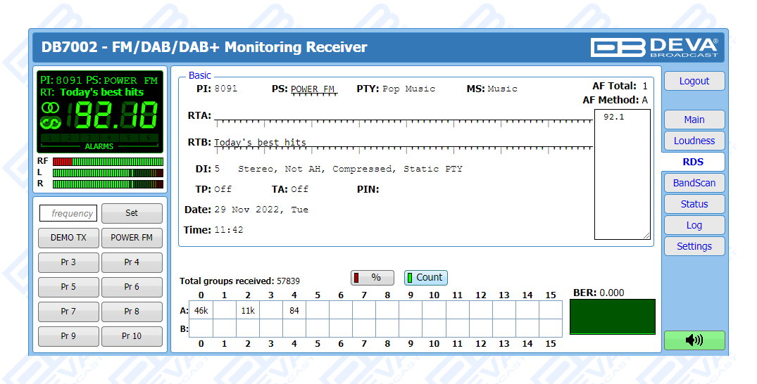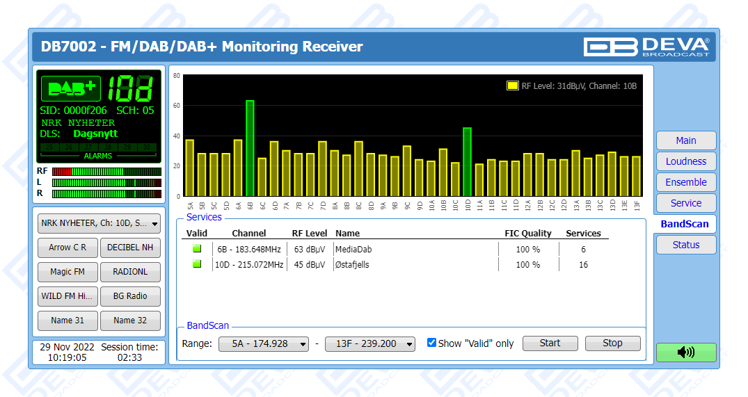 As a product that incorporates DAB/DAB+ monitoring capabilities, DB7002 fully meets the ETSI EN 300 401 DAB standard and offers support for Program Associated Data (PAD), as well as all standard bitrates and VBR, and automatically displays live metadata.