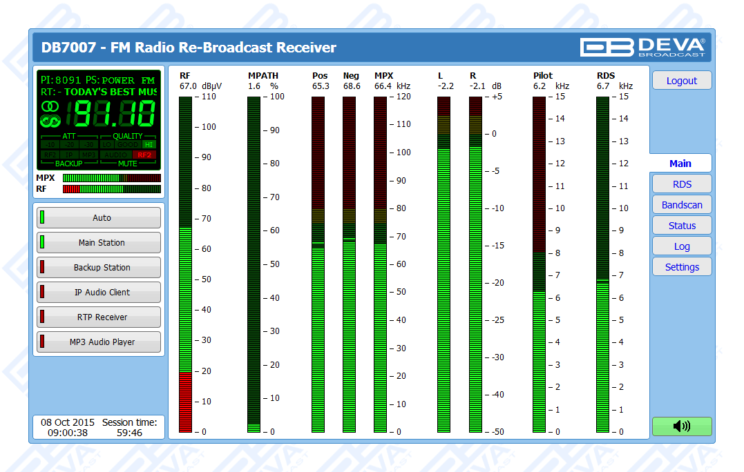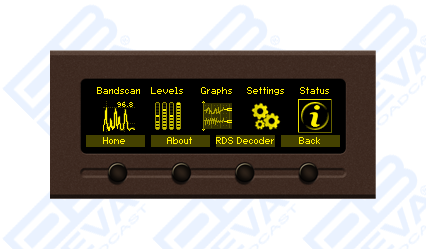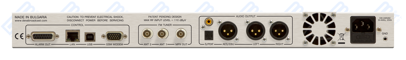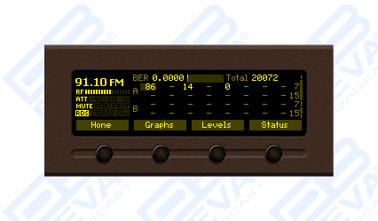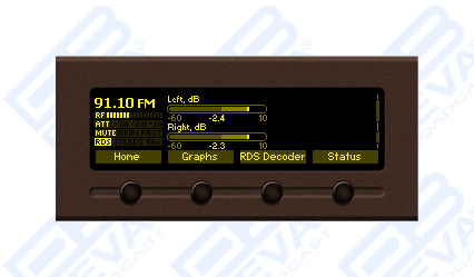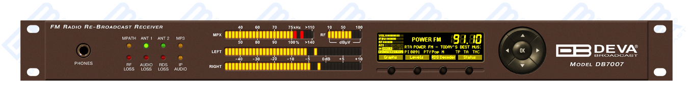 The DB7007 has an easy to read, high-resolution OLED graphical display, front panel alarm indicators and ultra-bright bargraphs with up to 40 LED segment indicators that allow reading at a glance of the MPX, Left and Right audio and the RF level, as well. The RF (IF) signal is digitized as soon as it enters the device and all signal processing is then made through DSP algorithms, thus guaranteeing measurement reproducibility over time. The IF bandwidth filters guarantees unprecedented signal selectivity, while the difficult adjacent-channel problem will be completely solved. DEVA advanced DB7007 will measure all important parameters of the FM transmission.