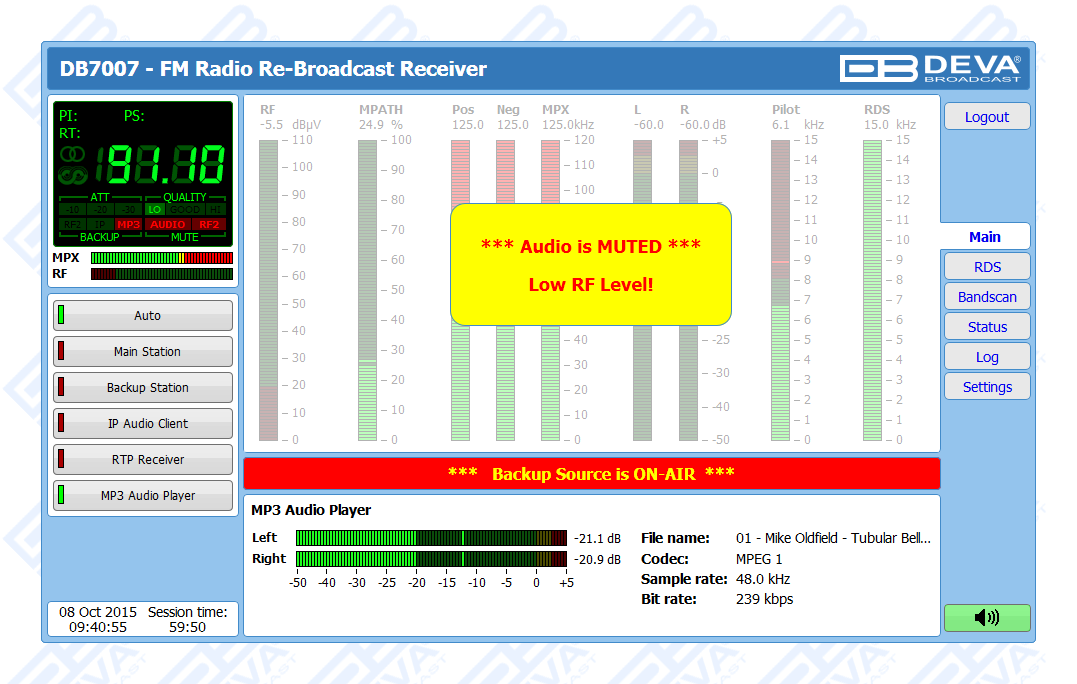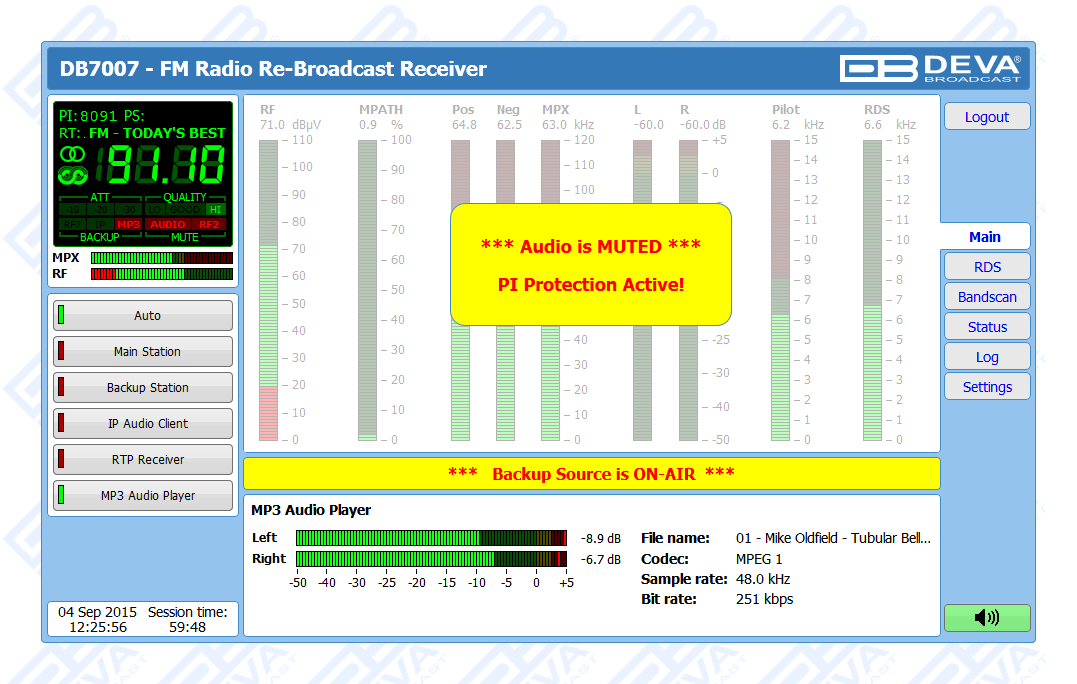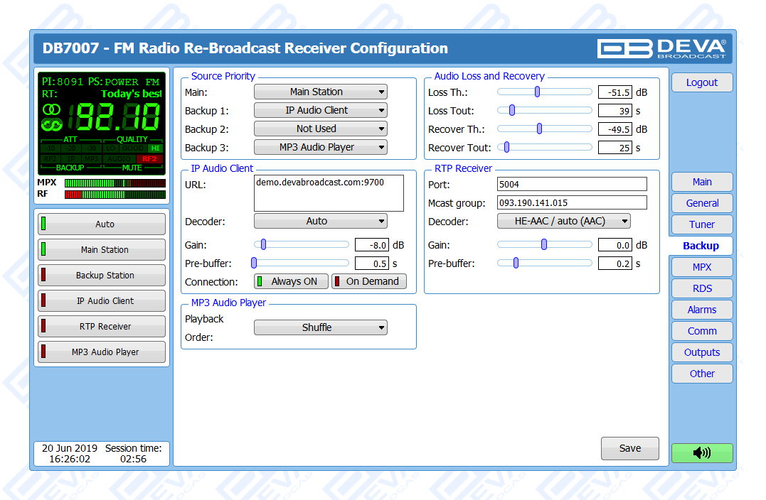 Advanced FM Radio Re-Broadcast Receiver with IP Audio & MP3 Backup Players
