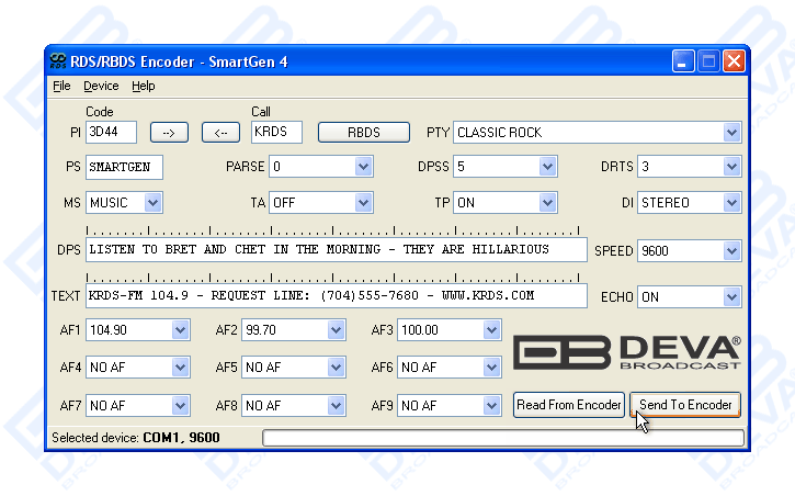 The SmartGen 4 is a full-function RadioData encoder that conforms to European and US standards for FM datacasting. It supports all service IDs and offers simultaneous scrolling-PS and RadioText messaging.