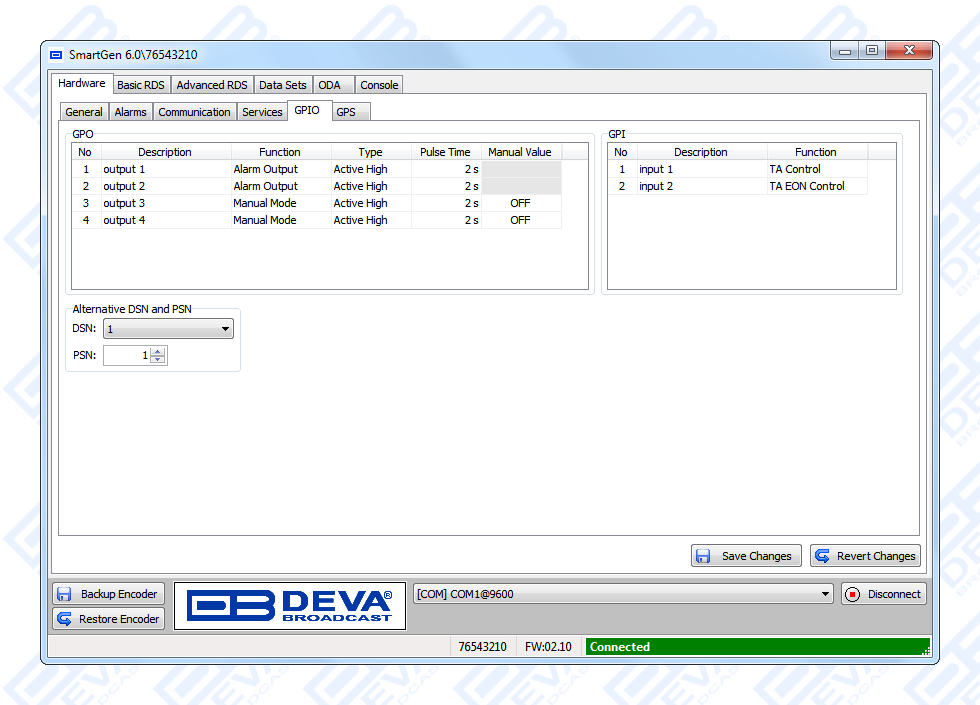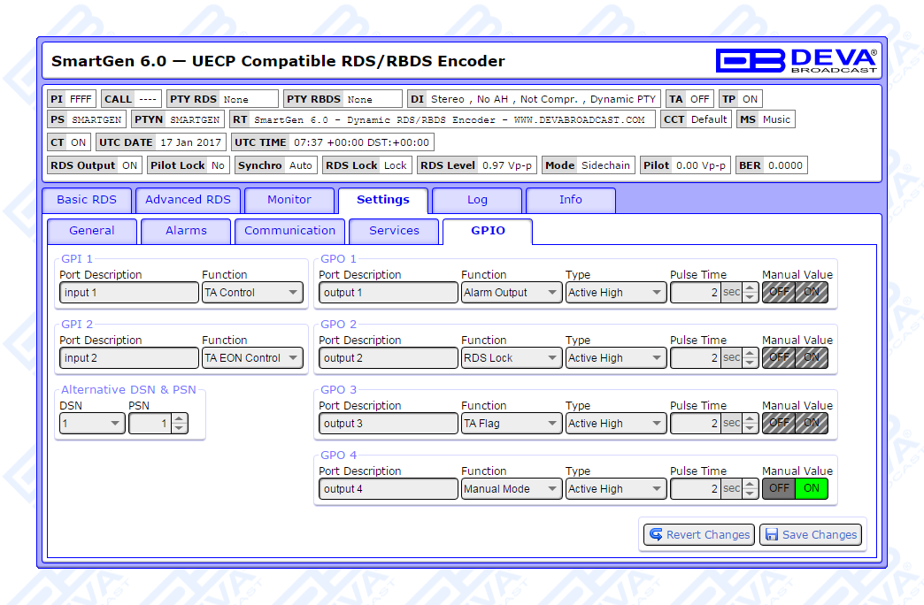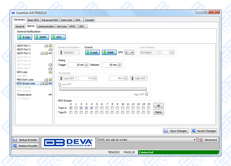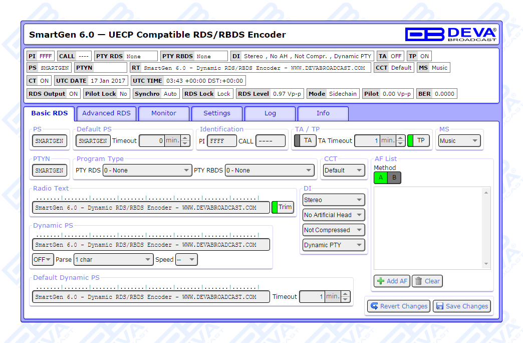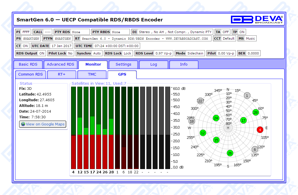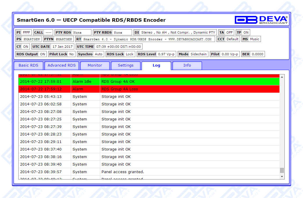 Since all DEVA’s products are manufactured to be user friendly in terms of operation, SmartGen 6 comes with simple and reliable programming software: “SmartGen RDS/RBDS Encoders Manager” and a password protected WEB interface for remote connection.