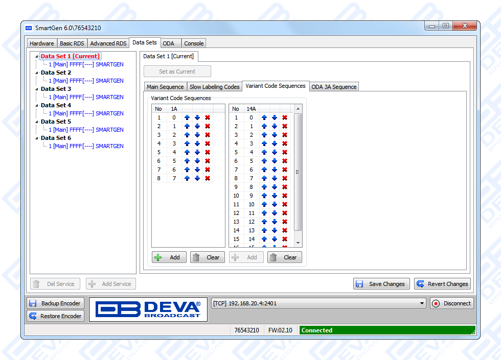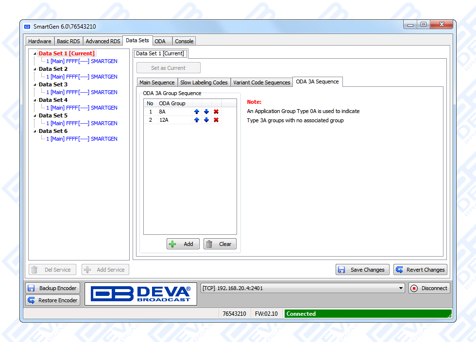 NexGen is software fully compatible with several devices from DEVA wide range RDS/RBDS product line. In order for the correct settings to the encoder and software to be applied, kindly refer to the RCS NexGen and Prophet settings for SmartGen RDS/RBDS Encoders document which can be found in the download section.
