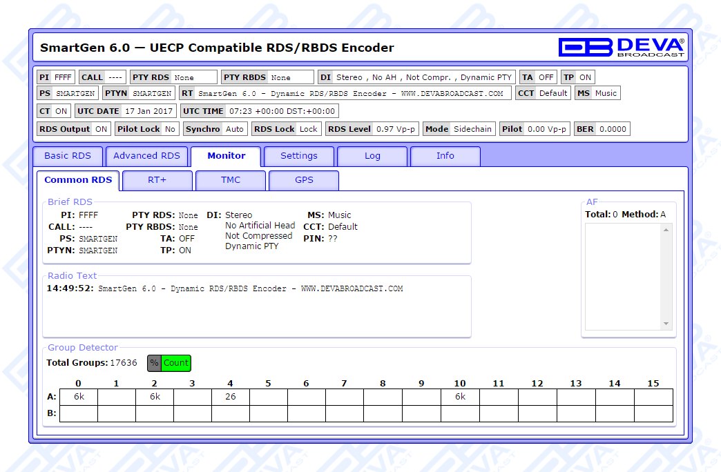 Supporting all RDS Applications, in conformity with the European CENELEC and the United States NRSC standards, SmartGen 6 is fully compatible with UECP EBU SPB490 Version 7.05.